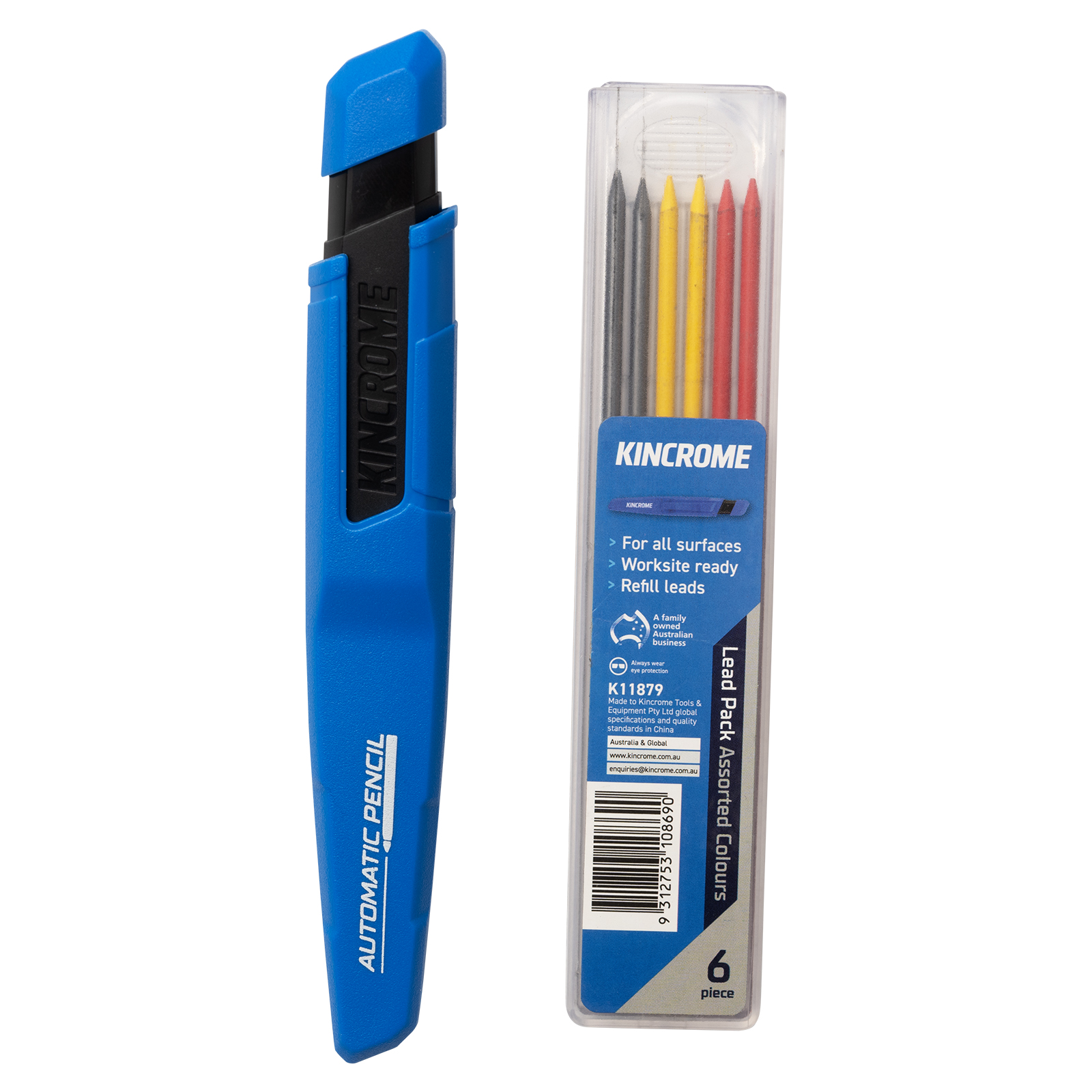 The Kincrome Automatic Mechanical Pencil is a durable, jobsite-ready tool that marks on dry, wet, glossy, rough, and dusty surfaces. It features a built-in sharpener in the pocket clip, a quick-click lead feed with retractable tip, and a two-in-one cap holster for easy access and protection. Designed for convenience and reliability, it’s the perfect pencil for trades and tough environments.